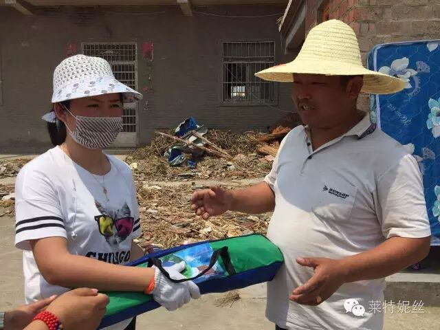 災(zāi)難發(fā)生后,由萊特妮絲員工組成的志愿者公益小分隊(duì),立刻趕赴江蘇省鹽城市阜寧縣災(zāi)區(qū)現(xiàn)場,為受災(zāi)群眾送去愛心與幫助。